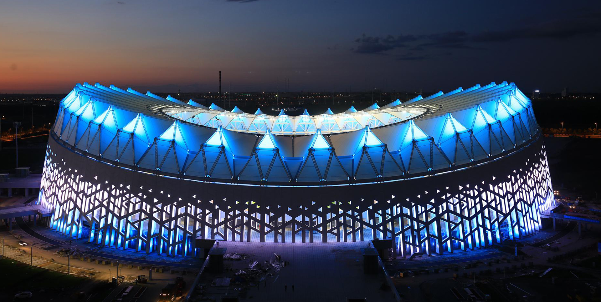 該項目占地280畝,總建筑面積23.9萬平方米,固定座席6萬座,包含兩片標準室外訓練場,是按照國際足聯和亞足聯最新標準設計建造的一座甲級專業足球場館,能夠承接除世界杯開幕式以外的所有國際A級足球賽事...